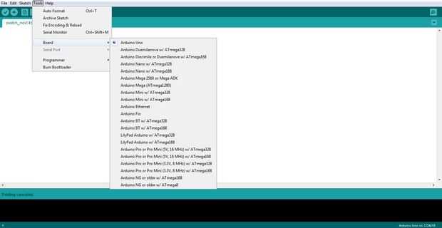 Herramientas -> Tabla -> tu placa Arduino (Hemos utilizado un Arduino Uno, pero puede utilizar cualquier placa Arduino)
