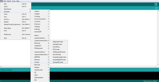 Similar a nuestra anterior instructables, deberemos subir una estándar firmado a la placa Arduino para conectar código de bolsillo. Aquí hemos utilizado un Arduino UNO, sin embargo puede usarse cualquier placa Arduino es lugar.