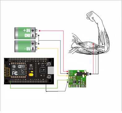 Ahora es momento de conectar nuestros electrodos, tendrás poner 3 electrodos en tu brazo, uno en la parte de abajo del musculo como lo dice la primer imagen, este servira como referencia un 0, los otros dos electrodos tienen estar en el musculo a medir, con una separación aproximadamente de 5 cm.