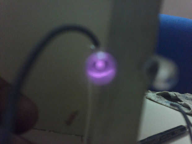 Si ves un punto púrpura brillante dentro de diodo (se muestra en la imagen) desde cualquier cámara digital, entonces es transmisor de infrarrojos y su funcionamiento. Otra cosa es receptor o transmisor dañado, que veremos en el siguiente paso.