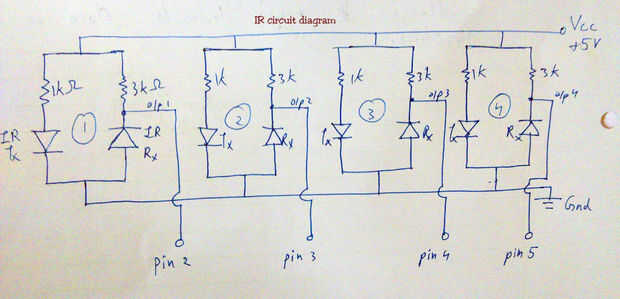 Una vez cargado el código, conecte IR par 1 o/p al pin 2 y IR par 2 o/p a la clavija 3.