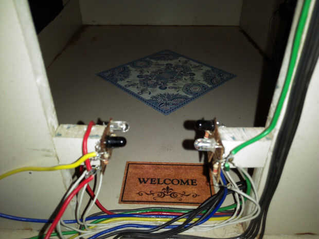 Ahora si pasar por la puerta o cortar la trayectoria de estos dos pares, 1 led brillará 2 primero y después llevado al moverse dentro de casa.