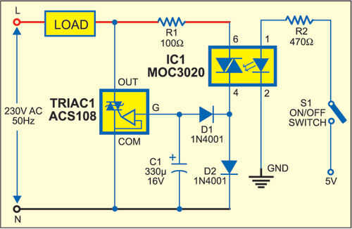 Paso 1: Circuito de control de interruptor de la CA con opto-triac