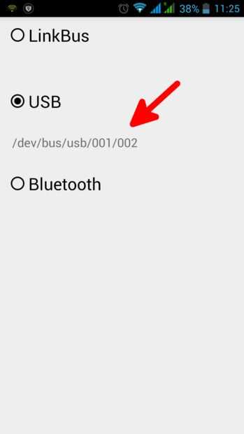Pulse "USB", seleccione el puerto, luego haga clic en el botón de Android "Atrás" para volver a la página anterior.