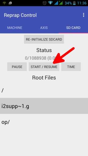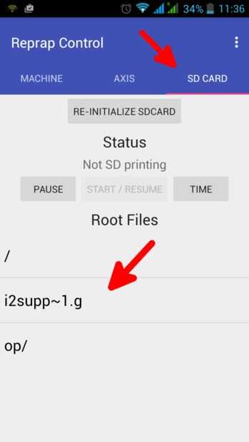 Seleccione el archivo de gcode para imprimir (aquí i2supp~1.g).