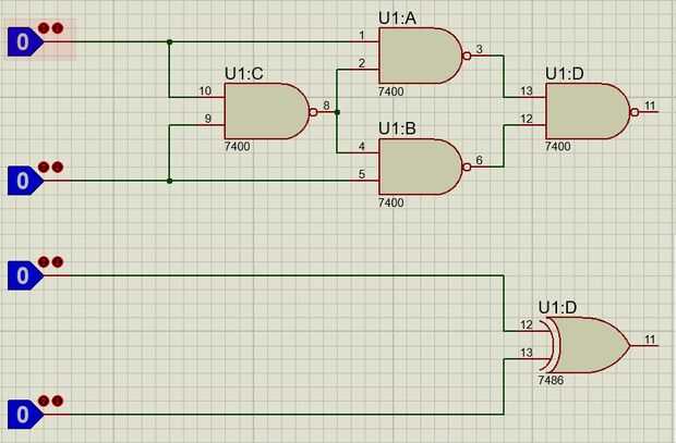 Proceda a conectar la comperta XOR (o exclusiva), at caso de no poseer una, tu puedes construirla con una 7400 (NAND), en mi caso yo uso la compuerta 7400 NAND, hice el diagrama en proteus para las Naciones Unidas mejor Spouse para cualquier circuito