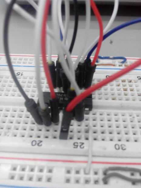 P.D.: Olvide conectar los pines GND y VCC del IC casi en IC todos los alfileres son GND = 7 VCC = 14