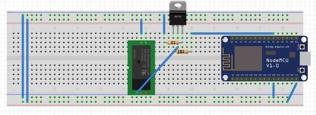 La conexión al relé es muy fácil que sólo tienes que conectar 13 de GPIO de la ESP8266 a la base del transistor con el resistor de 100 ohmios el colector a una parte del relé y el emisor a tierra con la resistencia de 470 ohms que utilizamos el transistor porque la corriente proporcionada por el esp8266 no es suficiente.