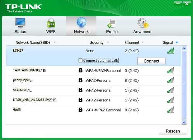 Con el servidor arriba y corriendo, podremos ver el SSID del acceso punto en otro dispositivo, esto depende whart dispositivo es por ejemplo la imagen muestra un dispositivo típico dongle Wi-Fi conectado a un PC, más ordenadores portátiles han construido en Wi-Fi y para un dispositivo Android usan la configuración. Establecer el enlace Wi-Fi en el dispositivo remoto etc. del ordenador portátil/PC/teléfono para el SSID de la ESP8266 (LINK3 en el ejemplo pero no en el suyo).