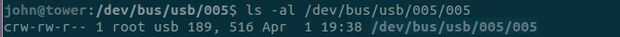 Desconecte y vuelva a conectar cable USB del dispositivo. Verifique que los privilegios cambiaron (podría haber conseguido un nuevo dispositivo # cuando se conecta a). ¡ Felicidades!!!!!! Ahora no necesita 'sudo' para ejecutar el programa!!!
