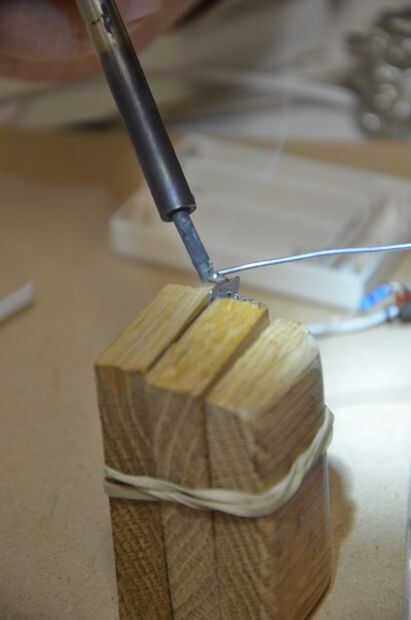 La idea es dejar una gota limpia agradable de soldadura en la etiqueta que los alambres se adhieren en el siguiente paso.