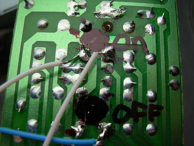 El cable blanco a la izquierda y el cable azul en la parte inferior son para el interruptor 'OFF'. Cuando se suelta el interruptor o hacia fuera, el nuevo interruptor es sustituir el interruptor 'OFF'.
