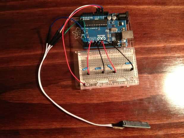 Esto es una conexión muy simple, su explica por sí mismo casi a punto. El módulo Bluetooth (por lo menos el que tengo) funciona a 3.3v, lo práctico, el Arduino tiene un pasador para que. Asegúrese de dar los 3.3v y GND, pero esta parte es importante, el TX del módulo va a la RX en el Arduino, y el RX del módulo va a TX en el Arduino. Desde allí, los 4 pines que escogió el código van cada uno para conectarse a un relé, pero para esta prueba, cada uno tendrá un LED. En mi caso, los pernos son 4-7, sólo asegúrese de que todos tienen toma de tierra así. Una vez hecho eso, hay no más arriba que se puede enganchar!