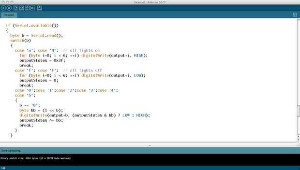 Así usted puede fácilmente lanzar juntos un CGI script (o servlet, o cualquier tecnología web flota su barco) para controlar las luces remotamente. El Serial.writes también la salida cuando una luz se cambia de usuario, por lo que la página puede tener versiones de Ajax para mostrar el estado actual.