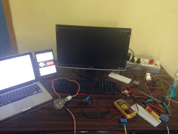 Control de acceso a su puerta desde cualquier lugar del planeta mediante su teléfono, ficha o PC.Esta configuración tiene dos segmentos principales, uno tiene la interfaz gráfica utilizando jQuery, SensorMonkey, Freeduino (Arduino compatible desarrol