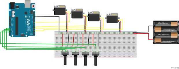 Se trata de segunda forma de control MeArm, ahora tendrá 4 potenciómetros.