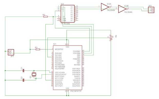 El JP1 es VCC y GND, el JP2 es donde conectas el motor, el inversor es necesario para esto, porque el trabajo DEMUX en bajo nivel lógico, pero si tienes uno que se trabajan en alta puede eliminar puertos de inversores.