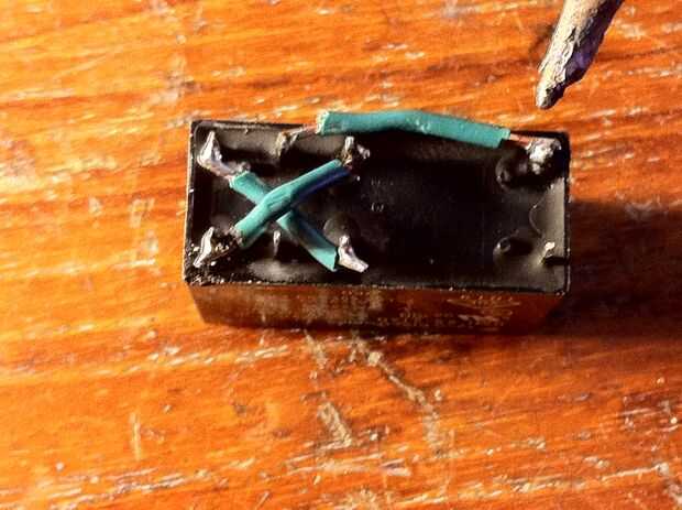 Esto conecta uno de los pines de la bobina del relé a uno de sus pernos comunes. Ambos de estos pernos se prestará más tarde con voltaje positivo.