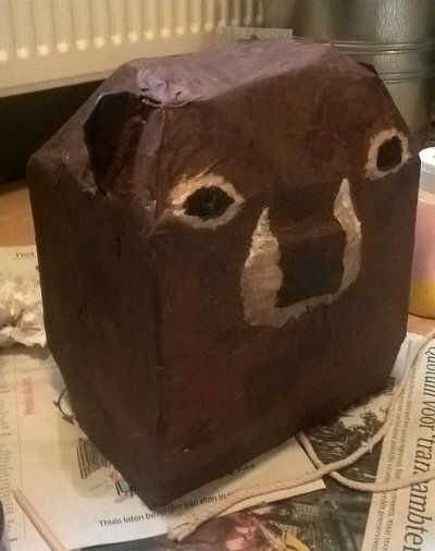 Para el caso en el otro caso (el oso), puse un cuadro sobre el otro caso y pegado de papel y cartón hasta que parecía un oso. Es útil para hacer la base de la caja de oso mientras está en el caso de arduino porque tenía el problema de que mi primer caso fue a la grasa por lo que no pude conectar la parte de triciclo más.