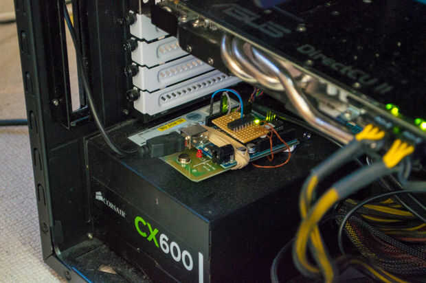 En mi configuración del dormitorio para juegos, películas, producción de música etc.. Tengo un par de monitores de estudio y un sub que son todos bastante poder hambre aun cuando realmente no hacer ningún sonido, así que hice un pequeño cacharrito que controla basado en cuando mi PC está encendido, ya que cuando quiero que el sonido. Uno de mis monitores también no dormir correctamente cuando no tiene ninguna señal, dejando mucha luz en la habitación.