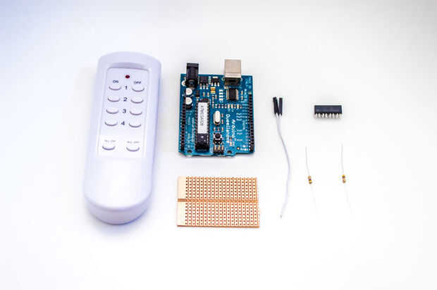 - Opto aisladores. Esto es lo que permite el Arduino a los botones del mando a distancia sin estar conectado electrónicamente a la misma. Utiliza luz en lugar de electricidad para cerrar el interruptor, por lo que no importa qué voltaje el control remoto está en. Yo tengo la mía de maplin. Es necesario como muchos canales como botones quieren presionar de Arduino (en mi caso 2).