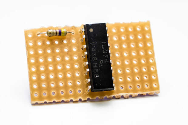Mi opto aislador tiene 4 canales porque eso es lo que maplin tenía en el momento pero solo voy a utilizar 2. Que confundido al principio que los LEDs adyacentes dentro frente a formas redondas mutuamente así que tenga cuidado acerca de esa parte. Añadir las resistencias en los pines 1 y 4.