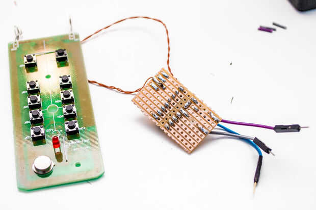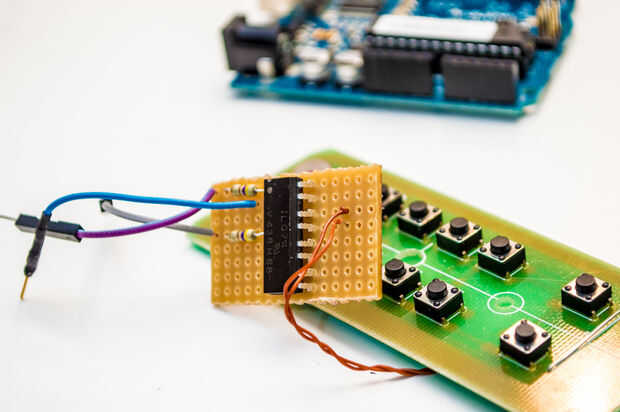 Añadir los pares de cables para los pulsadores hasta los pares de fototransistores. Se trata de pares de polos como 13 y 14, 15 y 16. La polaridad tiene que ser en esto pero no rompe nada si es malo, sólo que no hará nada. No hay sólida manera de saber qué manera alrededor de ella debe ser sin saber realmente el diseño de PCB, así que sólo tendrás que ver si funciona luego y si no entonces intercambiar los cables alrededor. Para mí un trabajo inmediato, el otro no por lo que he hojeado y me funcionó.