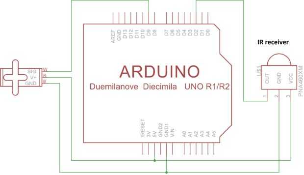 Cableado receptor IR y el motor servo se muestra en las imágenes.