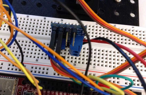 Ahora todos tenemos que hacer es conectar los servos micro PmodCON3 y conecte las líneas de datos para controlar los servos. Conectar un servo a P1 y otra a P2. Luego conecte un cable desde el primer pin de la cabecera de 6 pines para canal 28 en la WF32 y conecte un cable desde el segundo pasador en la cabecera de 6 pines a digital canal 29 en el WF32. Luego, conecte un cable de alimentación de 5V a la terminal de tornillo positiva y un cable de tierra al terminal de tornillo negativa. Conectar los 5V a 5V0 en el WF32 y conectar la tierra a la tierra en el WF32.