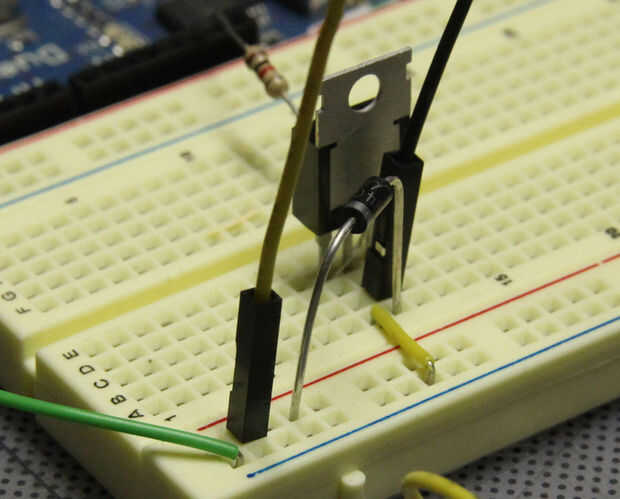 El diodo conecta el canal con el solenoide-tierra-/ transistor-colector-pierna, evitando la tensión de rebote dañe el circuito. El diodo se polariza y se deben orientar con una franja blanco/astilla en el lado del canal de alimentación de la conexión.