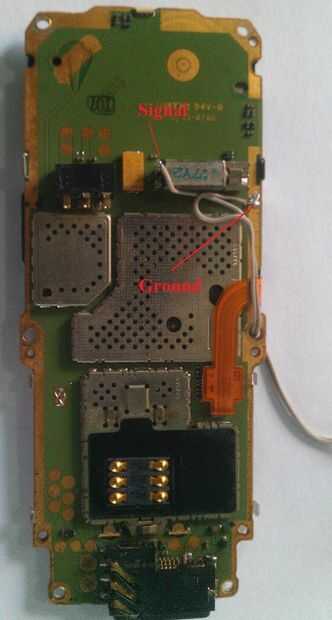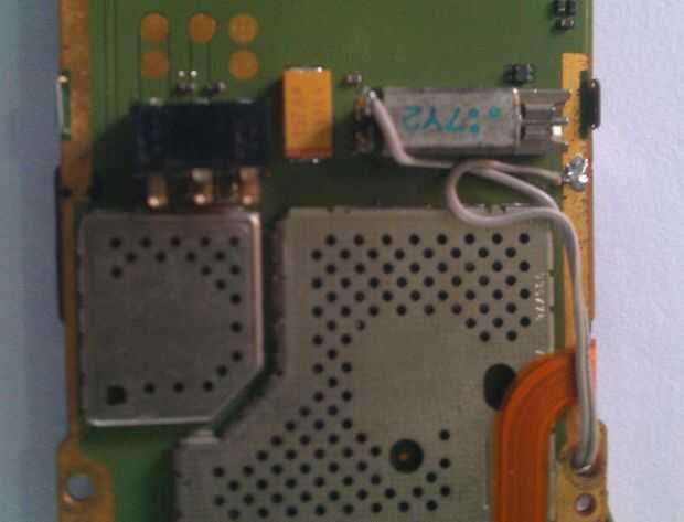 Ahora estáis obligados algunos de soldadura. Soldar un cable a la patillas de señal del motor y otro a la tierra de la placa base que se muestra en la figura. A continuación, vuelva a montar el teléfono y firmemente los tornillos. Encienda el teléfono.