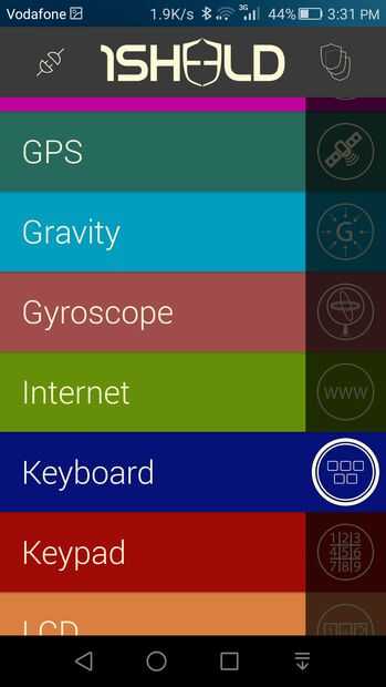 Paso 5: Aplicación 1sheeld y conectar la aplicación con su 1sheeld y abra el escudo de "teclado".