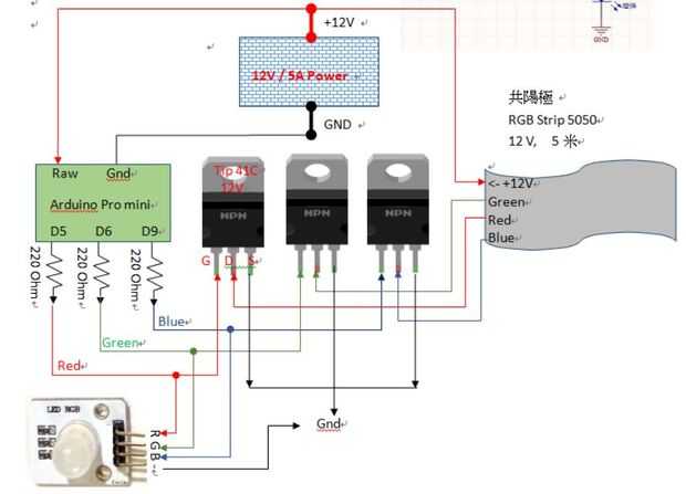 Fuente de poder 12V-5A X1 ofrecen el tira RGB y Arduino Promini.