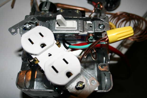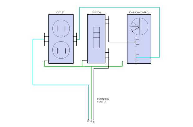 Debe adjuntar un cable de cobre desnudo de corto (5") al terminal de tierra del tomacorriente y el interruptor. Estos deben ser torcidos junto con el cobre pelado que el caso de la controladora de Johnson y el cable verde de la extensión. Coloque una tuerca de alambre a la parte superior para mantenerlos juntos.
