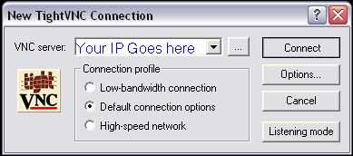 En Windows, es tan simple como abrir VNC viewer e introduciendo la dirección IP que guardó anteriormente.