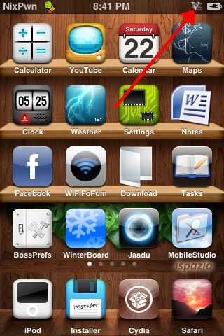 Saber si estás conectado a tu iPod/iPhone, arriba en la esquina, al lado de la batería, habrá un logo VNC (como en la segunda foto)