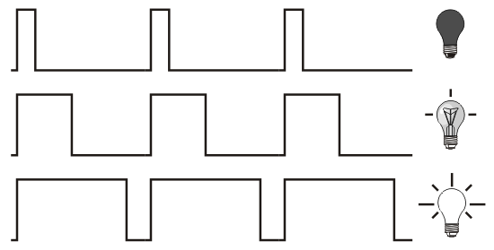 Utilizando esta función, es posible variar, por ejemplo, la frecuencia de encendido y apagado de un LED.