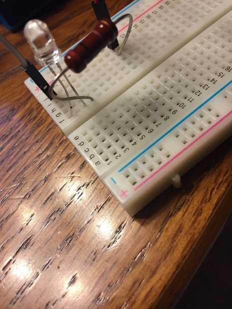 Asegúrese de que está enchufado el cable del LED en el Pin Digital 2, el LED que está más cerca de la resistencia es el lado más corto (negativo) y el alambre de la resistencia se conecta en el Pin Digital de masa (GND).