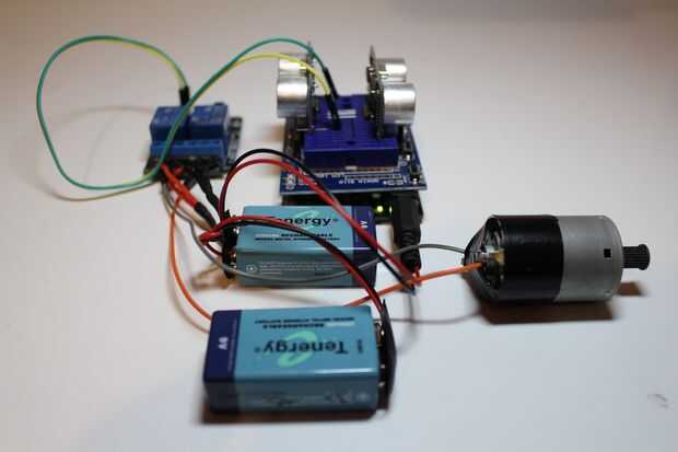 Si todo fue hecho correctamente, la rotación del motor se controla por los objetos que activan los sensores ultrasónicos.