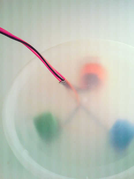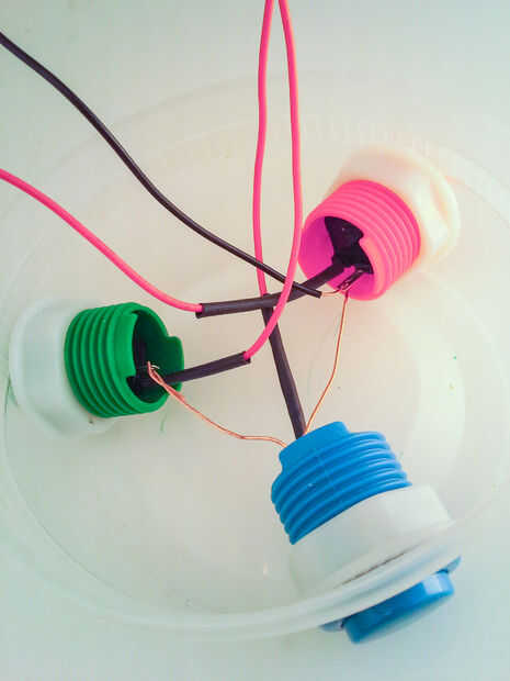 Corte un pequeño agujero en la tapa y deslice los cables a través de él. Cierre la tapa, y es su caja del botón, listo para ser enchufado!