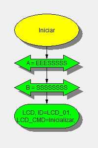Una vez declarados los pinos, debemos insertar el bloque de inicialización del display LCD. El mismo tiene las rutinas necesarias para el buen funcionamiento del dispositivo. Insertamos desde "Bloques > recubrimiento > Pantalla LCD > Inicializar".