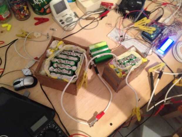 Usé las baterías de iones de litio caseras para probar mi controlador. He utilizado 8 celdas en paralelo y hasta 5 sets en la serie de 20V con 40 células.