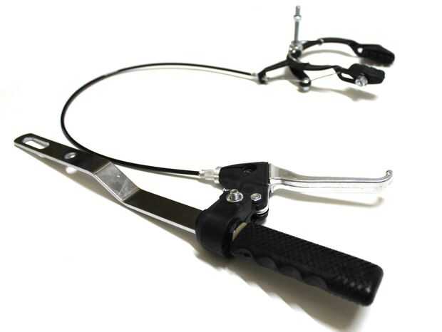 Si tienes un mango cilíndrico, se guardan un poco de dolor. Simplemente Envuelva un rollo de cinta aislante hasta que el cuerpo de la manija es lo suficientemente grueso como para colocar la palanca de freno. Deslizar la palanca, apretar y listo.