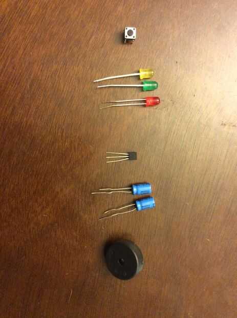 3) resistencias (un 10KΩ resistor, tres resistencias de 220Ω y un 1MΩ)