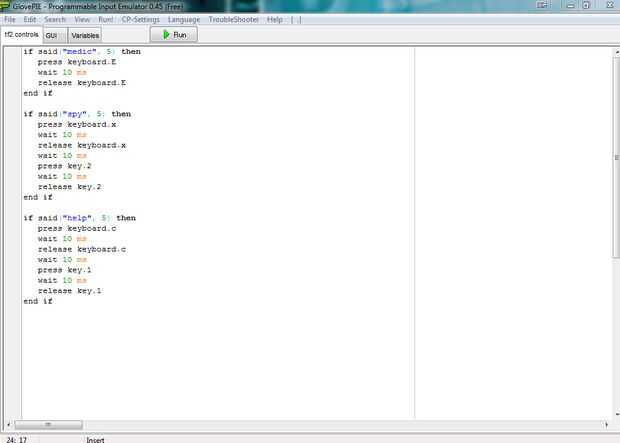 Observe la declaración de 'OR' - Esto significa que GlovePIE reconocerá "oculta" y "ocultar GlovePIE".