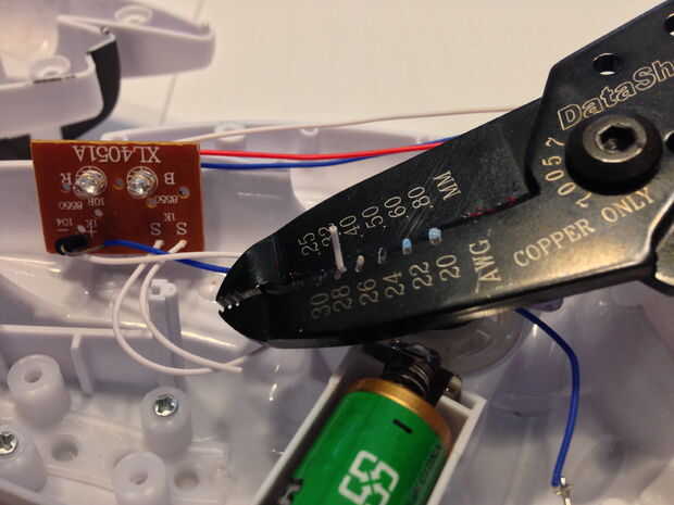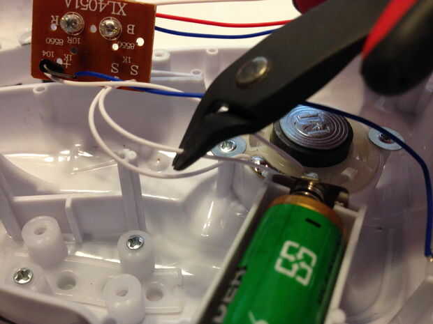 Cortó uno de los cables del altavoz y había despojado de los extremos.