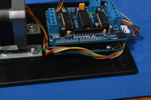Encontrar el mejor lugar en tu jukebox gabinete para montar el proyecto. En el caso de la SMC1, es en el lado izquierdo del gabinete debajo del amplificador. Reunir materiales para el proyecto. Muchos de los artículos se pueden comprar de Adafruit. Algunos deben fabricarse usted mismo. Otros pueden robaban de la caja de los juguetes rotos y proyectos olvidados. Montar el escudo del motor y prueba. Adafruit tiene una guía paso a paso para el montaje. Examinar todas las juntas de soldadura con una lupa. retocar las junturas de soldadura sospechosa. El prototipo es necesario construir desde algunas sustituciones de componentes pueden ser necesarias. Este es un ejercicio de aprendizaje así como un control remoto. El escudo del motor es capaz de controlar 2 Servos, 4 motores DC, motores paso a paso 2. Sólo tenemos que controlar un motor paso a paso. Conocimiento de las asignaciones de pines es útil para evitar conflictos cuando se conecta a otros dispositivos en el proyecto. El escudo del motor utiliza los siguientes pines de arduino.