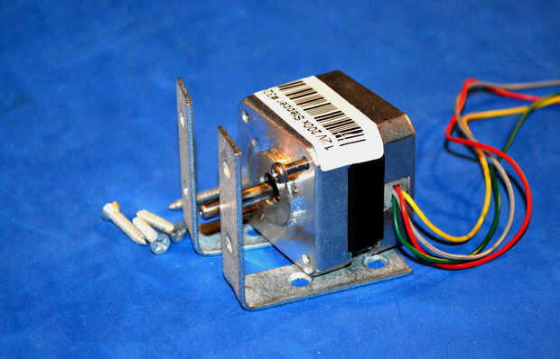 Utilice dos 2" en forma de L soportes de estante para los soportes del motor. Ponga los soportes en L lado a lado en una mesa. Coloque el motor paso a paso en los soportes. Marque la ubicación de los orificios de montaje del motor. Taladre los orificios a la misma medida de los tornillos de montaje del motor. Sujete el motor a los soportes.