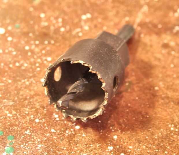 La forma más fácil de hacer que tu disco es con un serrucho de 25 mm. Mi Bosch sierras de kit por suerte tenía uno de ese tamaño (última foto). Lamentablemente broca de mi sierra es 5 mm, por lo que el orificio en mis discos necesita ampliar a 6 mm.