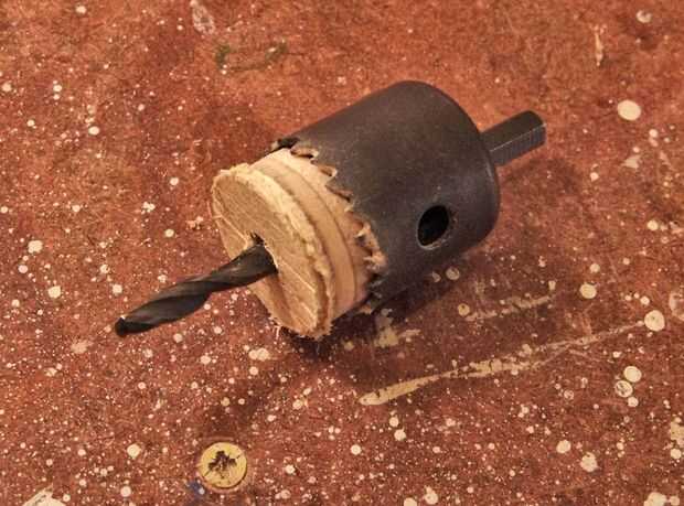 Primero perfore unos 2 mm del disco con su Serrucho (primera y segunda imagen). Girar la madera y sobre 1 o 2 milímetros de la parte inferior (tercera imagen) para minimizar el breakout de la madera cuando el agujero se rompe a través del taladro en el paso final.